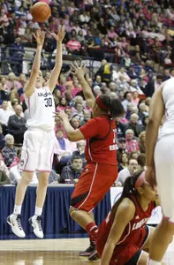 Sunday's game was the annual Play4Kay game in honor of former N.C. State coach Kay Yow, who died of cancer in 2009. UConn wore uniforms with pink trim and all the fans were given pink pompoms. The Huskies were auctioning off their uniforms after the game for the charity.