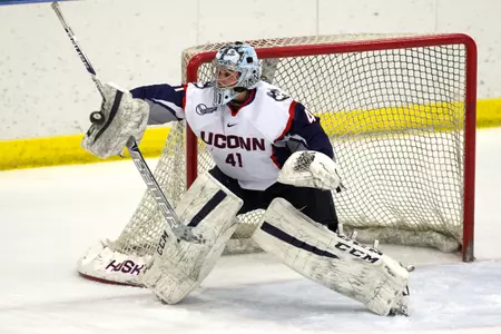 TROY, N.Y. - Junior goaltender Annie Belanger (Sherbrooke, Quebec) boasted 38 total saves in UConn's 3-0 loss to RPI in game one of the series Friday at Houston Field House.