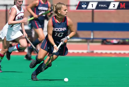 COLLEGE PARK, Md. - No. 1 UConn field hockey had its 42-game regular season winning streak snapped on Sunday, falling to No. 5 Maryland, 2-1. Senior Anna Middendorf scored the lone goal for the Huskies.