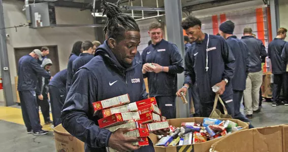 "It is very important for our UConn football family to be active members of the community," said Husky head coach Bob Diaco. "We want to teach our student-athletes how to be generous citizens who give back. The Connecticut Food Bank does outstanding work and hopefully we made a difference in the lives of people who need help."