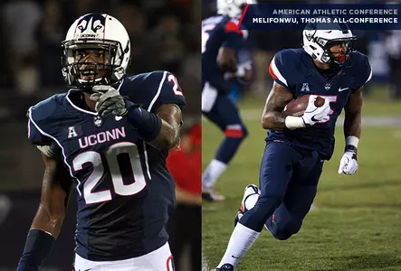 PROVIDENCE, R.I. - University of Connecticut senior safety Obi Melifonwu (South Grafton, Mass.) was named First Team All-American Athletic Conference on Wednesday while senior wide receiver Noel Thomas, Jr. (Norwalk, Conn.) was named to the Second Team.