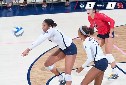 HOUSTON, Texas -- Redshirt freshman Kayla Williams dazzled with a double-double of 20 kills and 17 digs, as the UConn volleyball team got back in the win column on Sunday afternoon with a 3-1 victory over Houston at the Alumni Center.