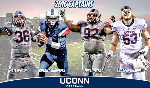 Walsh had eight tackles last year in two different games. He played in 23 games in 2013-14 as a fullback. Myers is a veteran of the defensive line and has played in all 25 UConn games over the past two years. He made 26 tackles last year, which was fifth on the team, and started two games. He had four tackles against Marshall in last year's St. Petersburg Bowl.