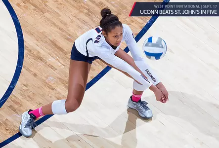 WEST POINT, N.Y. - In the final non-conference match of the season, the University of Connecticut volleyball team came up big when it counted - holding on for a five-set win over St. John's in the West Point Invitational on Saturday afternoon.
