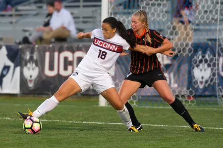 STORRS, Conn. - An early goal from redshirt senior Stephanie Ribeiro (Pawtucket, R.I.) was just enough for the No. 18 UConn women's soccer team, who topped Pacific 1-0 Friday at Joseph J. Morrone Stadium.
