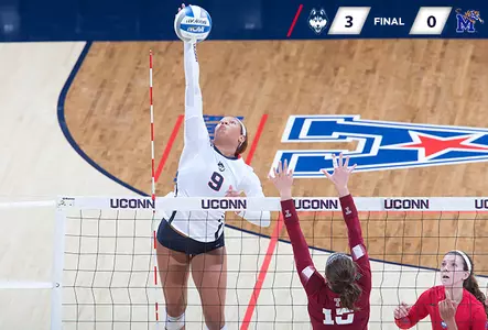 Tied 7-7 in the first set, the Huskies went on a 7-0 run - capped-off by a kill from Evans. After gaining the separation, UConn cruised to the first set win in front of a 600-plus crowd at the Roane Fieldhouse.
