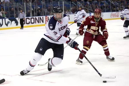 The Huskies extended their lead to 5-3 at 14:10 as Ojantakanen buried a rebounded from the right circle for his third on the year. Thompson put the finishing touches on the win with an empty netter from deep in the UConn zone with 57 seconds left for his team-leading 14th goal.