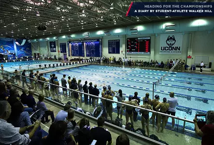 Editor's Note: As the UConn men's and women's swimming and diving teams prepare for the American Athletic Conference Championship in Houston from Feb. 18, Husky junior Walker Hill will write a daily diary on the team's preparation. Here are the first entries.