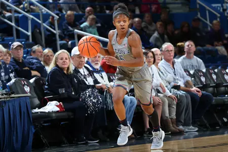 COLUMBUS, Ohio (AP) - UConn used a balanced offense and a dominant defensive effort to start the season with an easy rout of Stanford. Crystal Dangerfield scored 24 points and Katie Lou Samuelson added 21 to help the top-ranked Huskies beat the No. 10 Cardinal 78-53 on Sunday in Nationwide Arena, the host site for the 2018 NCAA women's Final Four. In her seventh career start Dangerfield ran the offense with a sharpshooter's mentality. The sophomore knocked down 6-of-7 3-pointers and recorded four steals. She averaged just 6.1 points per game and shot 31 percent from 3 last year. ''When you look at our team, by adding another player of her caliber and the way she plays, that changes the makeup of what we're trying to do,'' UConn head coach Geno Auriemma said. ''She's just so much more offensive minded and she creates a lot of stuff for herself and others.'' Gabby Williams and Napheesa Collier added 11 and eight points, respectively, for UConn (1-0). DiJonai Carrington led Stanford with 21 points on 8-of-15 shooting, despite coming off the bench.