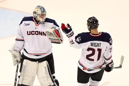 HARTFORD, Conn. - UConn got goals from six different Huskies on Tuesday night on the way to an 8-2 rout of the Massachusetts Minutemen in a Hockey East match-up at the XL Center. Senior Jeff Wight (Coquitlam, British Columbia) and sophomore Benjamin Freeman (Falmouth, Maine) each scored a pair to lead the UConn in the lopsided win.