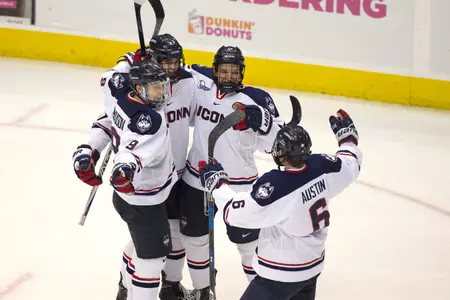 UConn got a five-on-three chance when Colgate was called for interference at 12:50 and then a slashing call at 13:39. The Huskies produced the game-winner at just 18 seconds in the two-man chance as Wisocky centered a pass to Austin in the slot and the senior defenseman buried a one-timer through traffic for his third on the season.