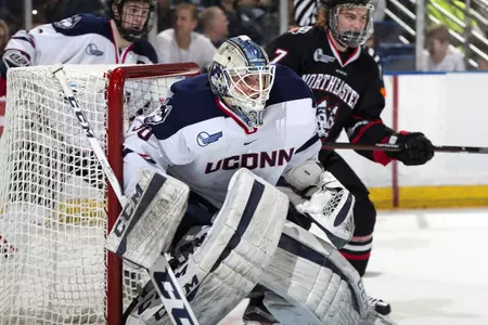 HARTFORD, Conn. - Northeastern got a pair of goals from Sam Kurker and a 20 save effort from goaltender Ryan Ruck to post a 3-0 win over the UConn Huskies Friday night from the XL Center in Hartford. The Huskies were shutout for the second time this season and the first time at home since November of 2015 as they drop their third-straight.