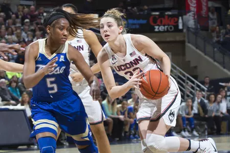All five UConn starters scored in double figures. Katie Lou Samuelson, who has reached double digits in every game this season, had 16 points. Kia Nurse had 14 and Gabby Williams chipped in with 10.