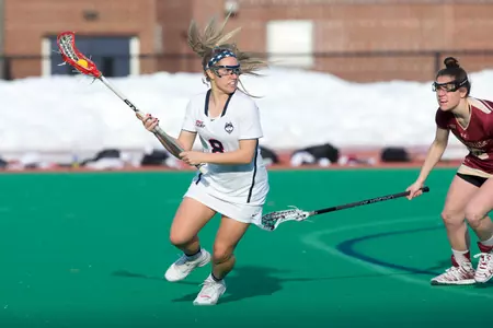 The UConn offense surged in the last seven minutes of the game where the Huskies scored six unanswered goals to close out the game and come out on top 17-8. Junior Grace Nolan (Marcellus, N.Y.) scored back-to-back in the same minute to finish with a hat trick on the day.