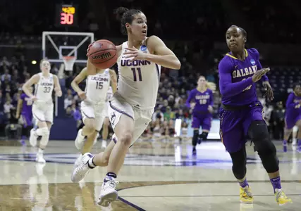 Kia Nurse, who missed the last four games of the regular season with an ankle injury, also scored 24 points. The junior guard when 6-for-7 from 3-point range for the Huskies (33-0), who haven't lost in the first round since 1993.