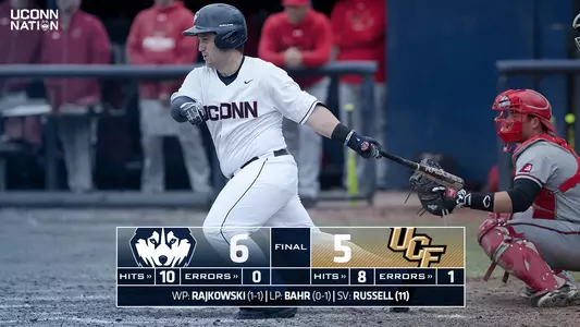 ORLANDO, Fla. - A Tyler Gnesda solo home run in the eighth inning lifted UConn to a 6-5 win on Saturday afternoon against the UCF Knights.