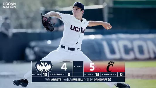 STORRS, Conn. - A nightmarish five-run ninth inning brought the Bearcats back from a 4-0 deficit to stun the Huskies 5-4 on Friday afternoon at J.O. Christian Field.