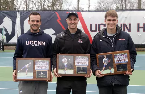 Before Saturday's match, the Huskies honored their three graduating seniors, Parker Goldstein (Marietta, Ga.), Christopher Toner (South Hamilton, Mass.) and Arnaud Valentin (Ridgefield, Conn.) and their families.