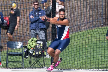 On Friday, in the first day of action, freshman Cameron Thompson (Cortlandt Manor, N.Y.) won the hammer throw wtih a winning throw of 197 feet, 10 inches for the Huskies.