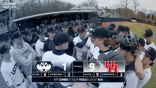 UConn (24-20, 9-8 American) recorded just six hits against Houston starter Trey Cumbie in a complete game performance. The Huskies lone run came in the fourth, Isaac Feldstein stroked a two-out double down the left field line and scored on an RBI single for Tyler Gnesda. Gnesda reached base three times, adding a pair of walks.