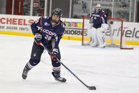 Sophomore Morgan Fisher made 22 saves for UConn, including 10 in the second period, in her first action of the season between the pipes. Fredette and Colangelo each recorded their first goals of the season in the loss.