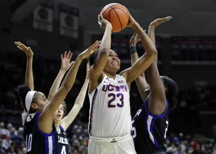 UConn put up a season high for points without junior forward Katie Lou Samuelson, who missed the game with a left ankle injury she suffered in the Tulsa loss. She was still sporting a blackened left eye after taking an elbow to the face against Texas on Monday.
