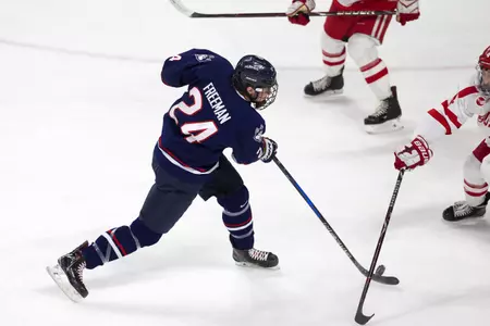 The Huskies got a power play goal of their own at 14:57 to grab a 4-3 lead late. The Terriers tried to clear but Freeman picked off the pass in the neutral zone and skated into the slot where he buried a wrister top-shelf for his eighth of the season.