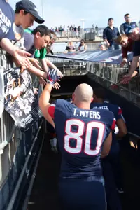 Myers, a native of Coventry, Conn., finished his career with 30 receptions for 351 yards and three touchdowns. He caught 16 passes in 11 games during the 2015 season, two of which were TD's.