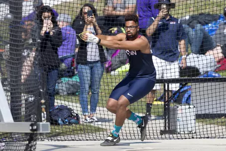 The Huskies started the day strong in the javelin and the hammer throw. Senior Seth Zuidema (Midland Park, N.J.) won the javelin while classmate Kevin Foster (Groton, Conn.) took third overall. Zuidema uncorked his best throw of the season to take gold, hitting the mark at 69.15 meters (226'10") to vault him up to third in the AAC rankings. Foster came in at 60.71 meters (199'02"0).