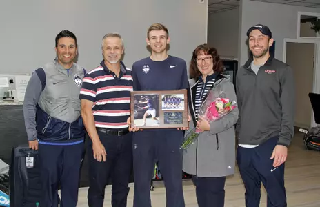 MANCHESTER, Conn. - The UConn men's tennis team grabbed the doubles point but fell short in singles play, losing to Boston University Sunday afternoon at the Magic Lincer Tennis Academy on "Senior Day". The Huskies honored their lone senior Jonathan Edwards (Isle of Palms, S.C.) after the match.