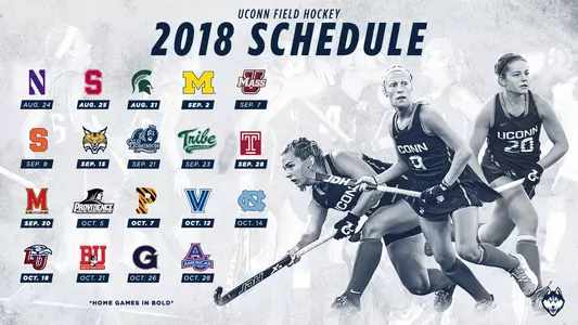 STORRS, Conn. - The University of Connecticut field hockey team looks to defend its National Championship crown, but it will be no easy task as Head Coach Nancy Stevens announced the squads' 2018 schedule Tuesday morning.