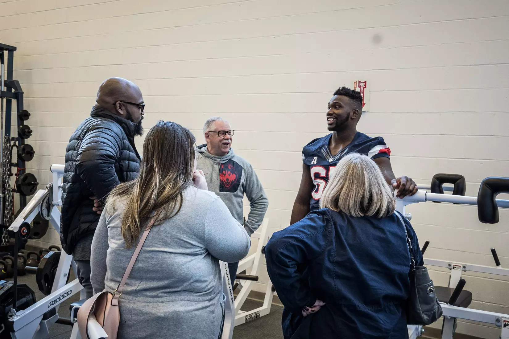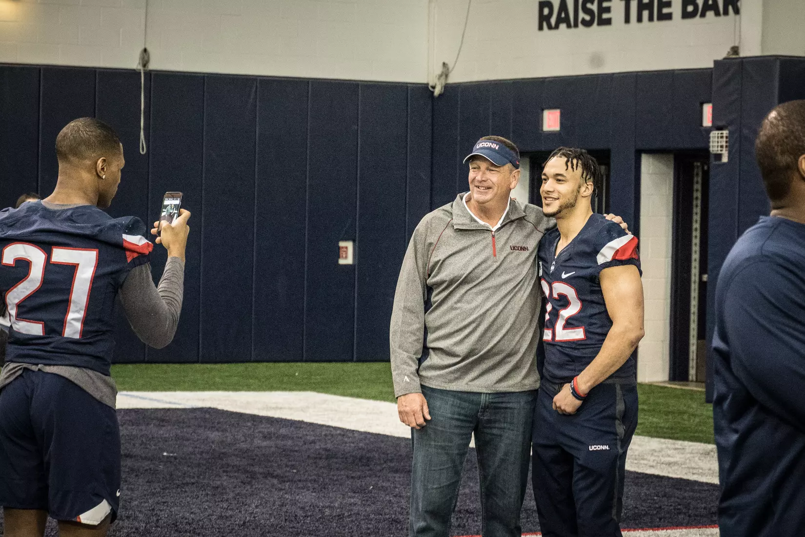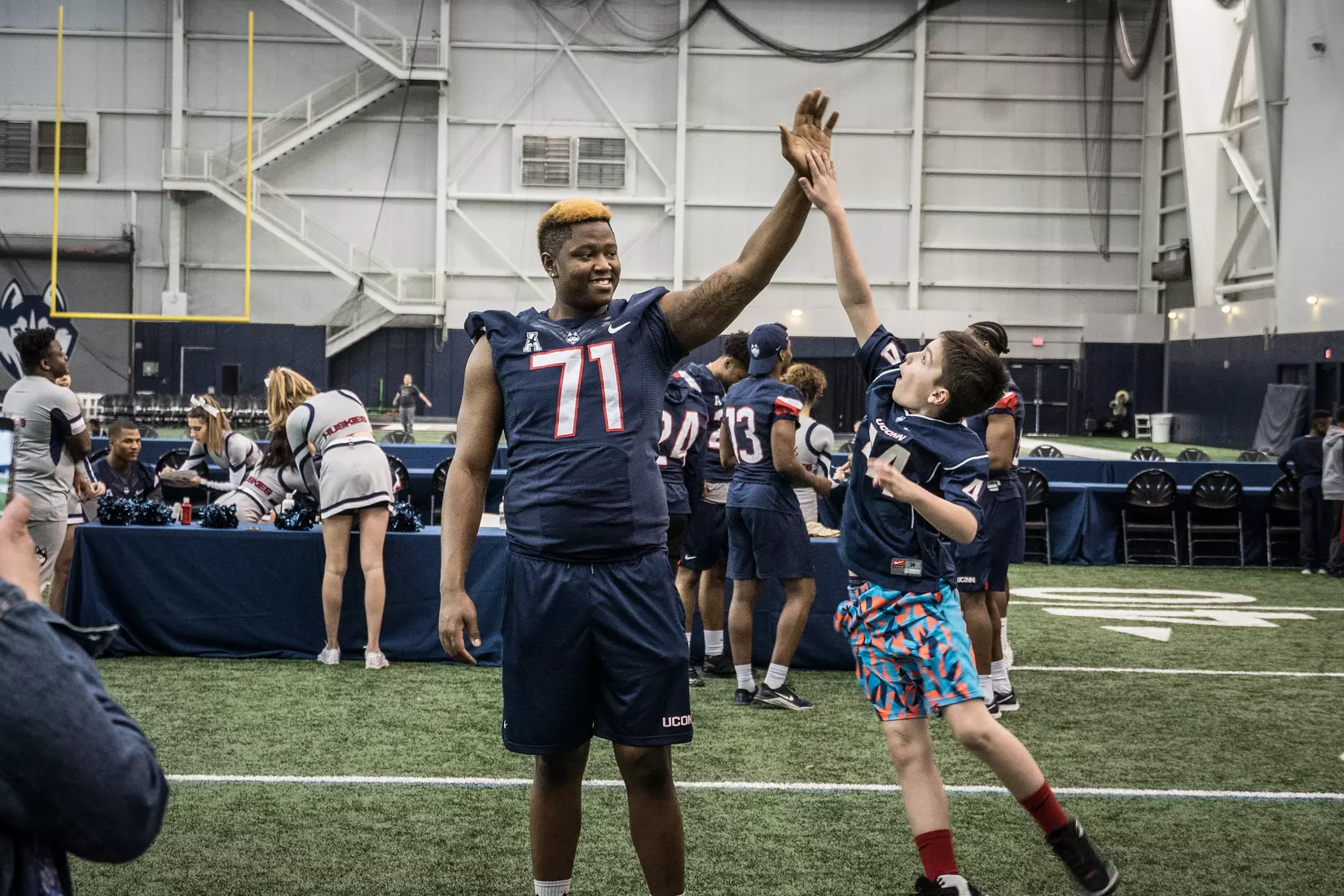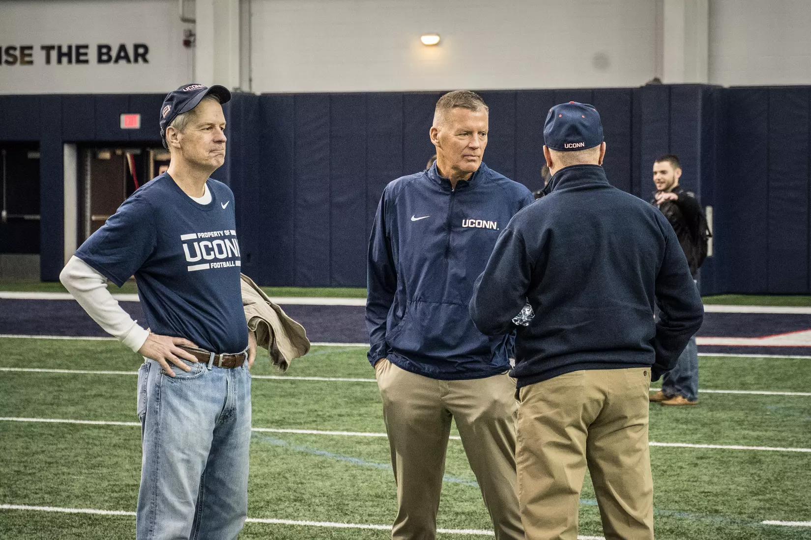 STORRS, Conn. - Approximately 500 UConn football fans visited Storrs on Saturday for the team's Open House and Fan Fest at the Burton Family Football Complex and the Mark R. Shenkman Training Facility. The team wrapped up spring practice on March 15 and Saturday's event sought to take the place of the spring game while giving UConn fans a more interactive and engaging experience with the team.Â