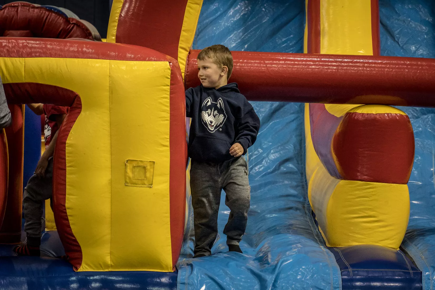The tour was followed by a strength and conditioning presentation given by Matt King and a defensive and offensive clinic given by the coaching staff. Those presentations were followed by a question and answer session with student-athletes and Coach Edsall while bounce houses, face painting by the UConn cheerleaders and the UConn Dairy Bar truck remained available for the younger demographic.