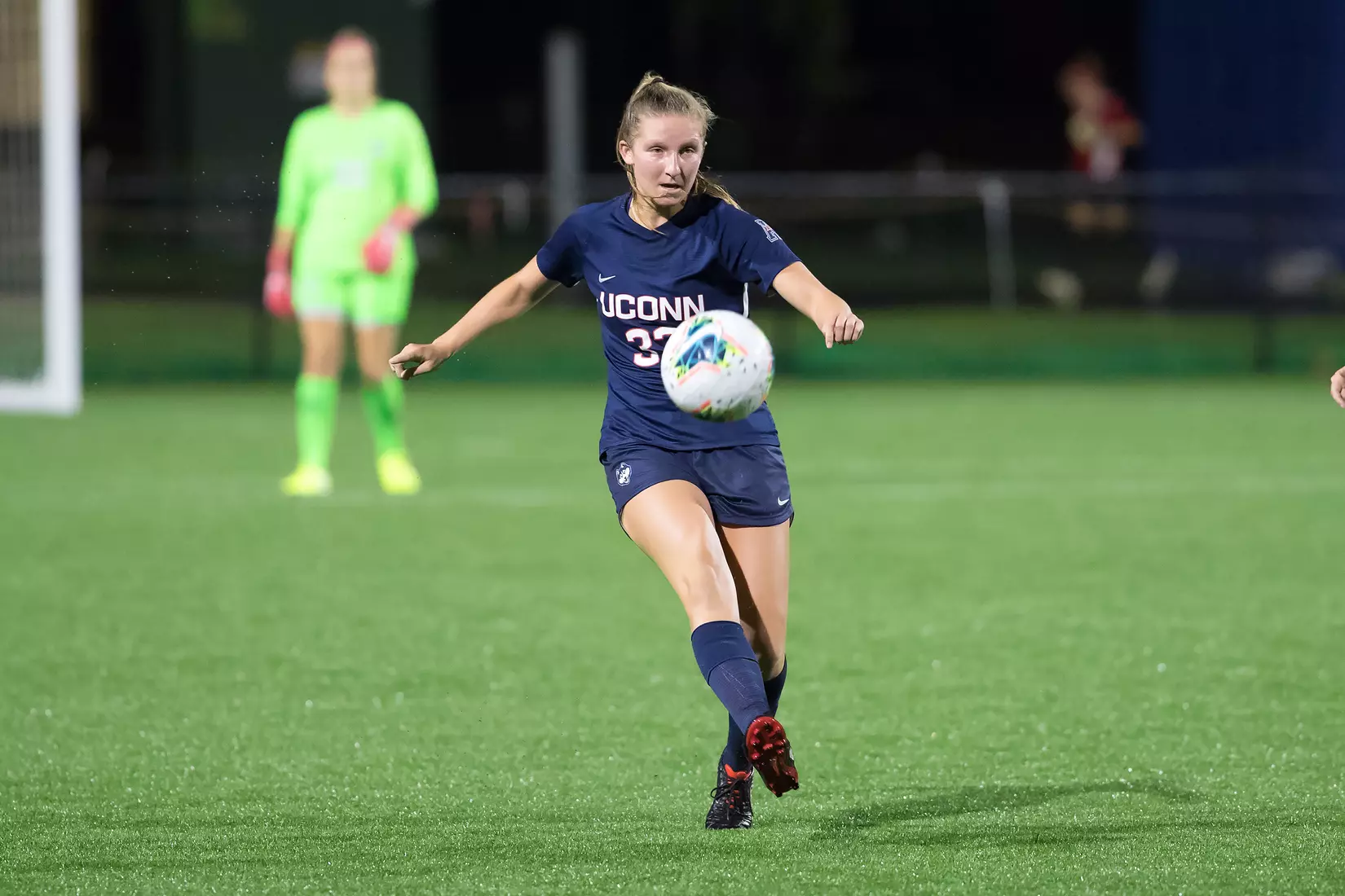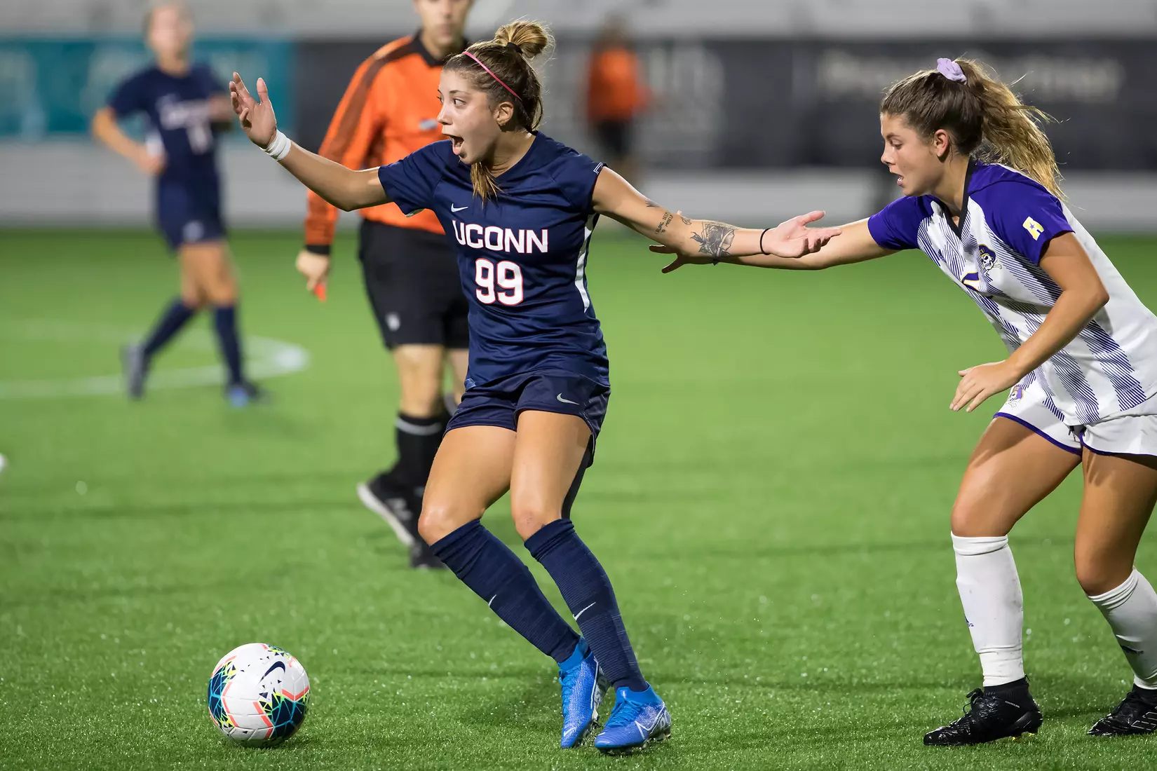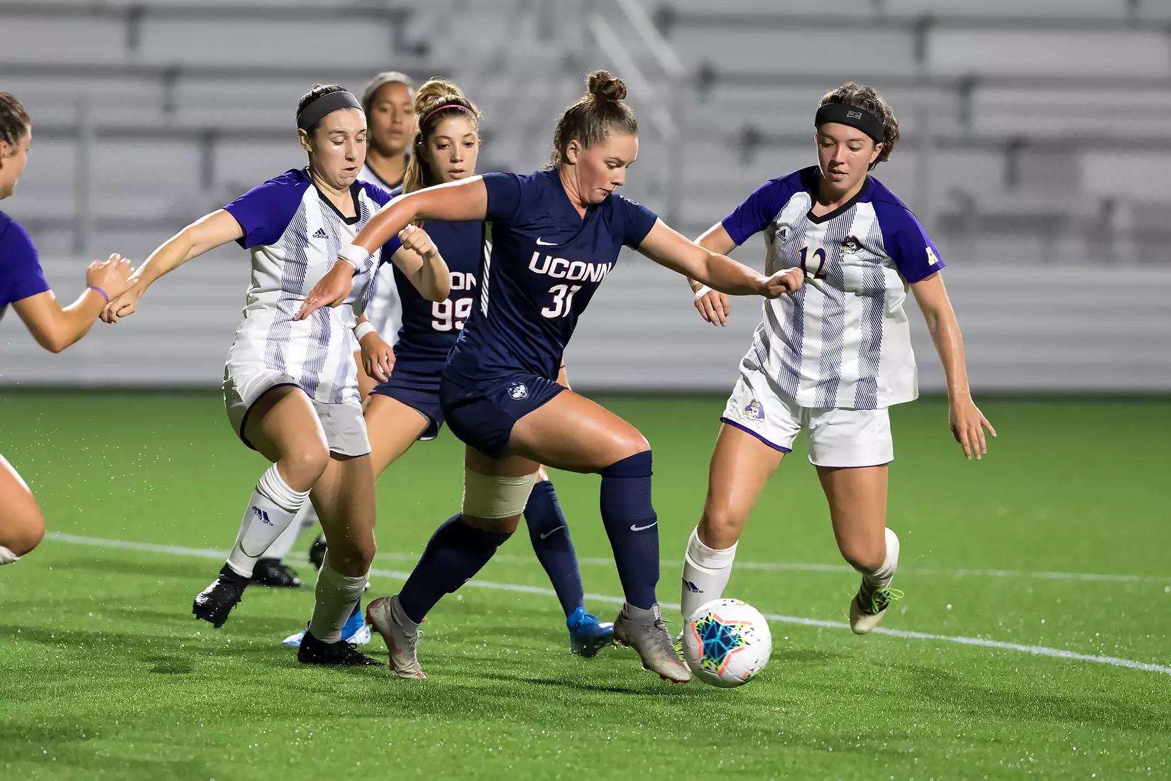 ECU logged seven shots on the night and capitalized on an opportunity in the 28th minute. The Pirates earned a corner kick opportunity and Daria Draovitch served a ball into the box. Jenna Dagles eventually found the ball at her feet and fired a shot towards goal that was blocked away by UConn defender Kara Long. However, play was eventually blown dead and the linesmen ruled that Long was inside the box when she knocked the ball away and awarded the lone goal of the match to the Pirates.