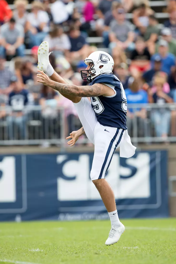 The Huskies looked much improved on both sides of the ball, with the offense sparked by three new faces who did not play in the opener. True freshman quarterback Jack Zergiotis threw for 275 yards, completing 21 of 31 in his first college game, and receivers Ardell Brown and Cam Ross combined for 11 catches and 166 yards.