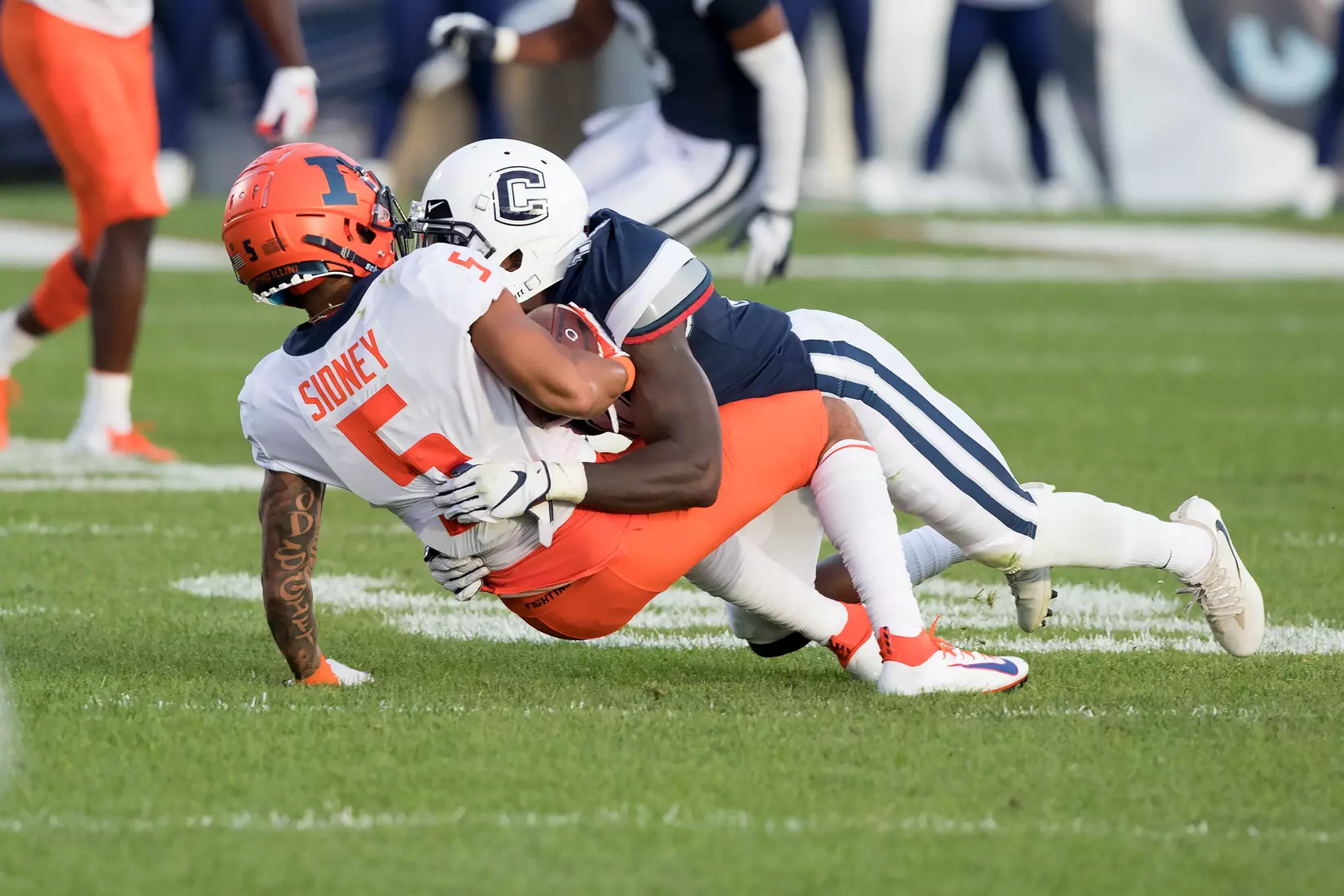 Two field goals by Clayton Harris later, UConn had a 13-0 lead in the early minutes of the second quarter. But Illinois dominated the rest of the quarter to take a 24-13 lead at halftime and looked ready to put the game away in the second half.