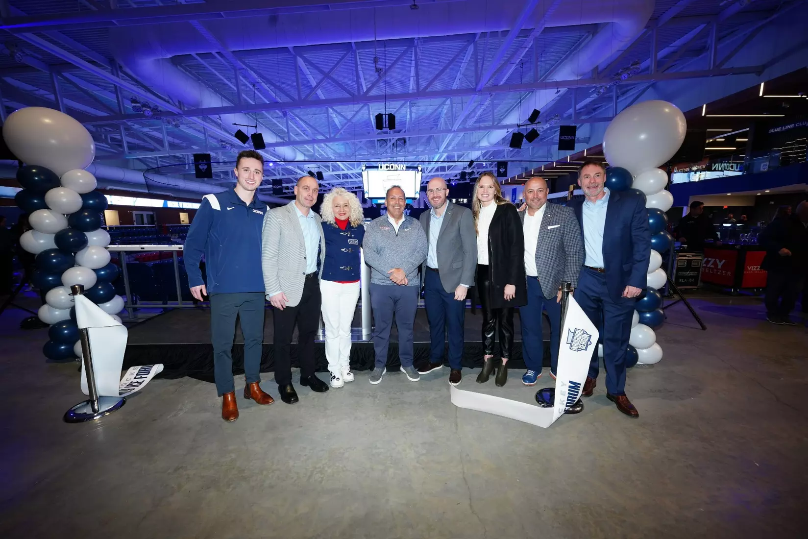 UConn Director of Athletics David Benedict was joined by Governor Ned Lamont, University President Radenka Maric, head coaches Mike Cavanaugh and Chris MacKenzie and UConn Chairman of the Board of Trustees Dan Toscano on the concourse of Toscano Family Ice Forum overlooking center ice to officially cut the ribbon and welcome a new era of UConn Hockey.