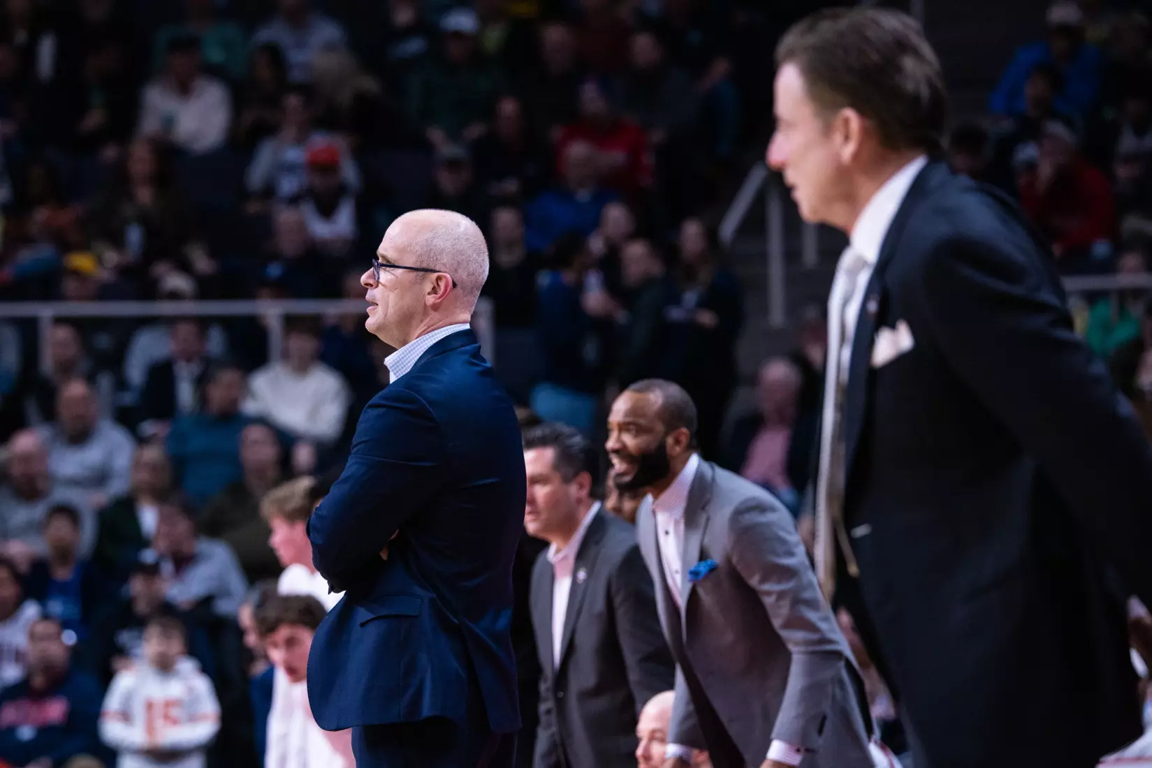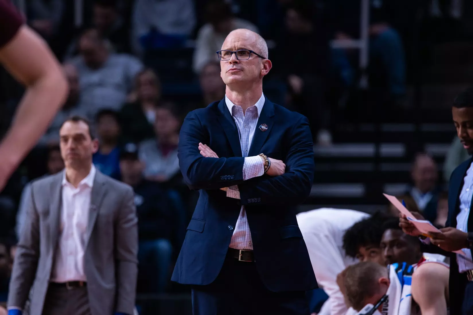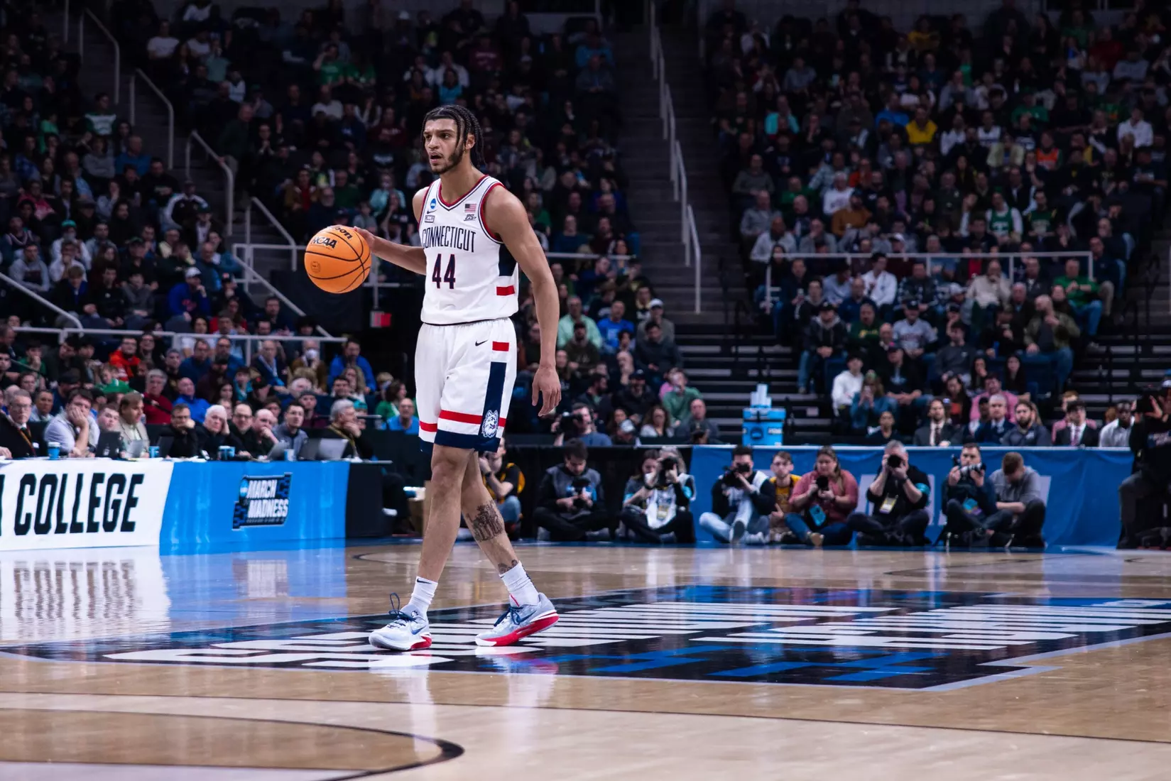 UConn trailed by a point at half, but came out of the break clicking. A four-point play by Jordan Hawkins immediately gave the Huskies the lead and then Sanogo went to work inside.