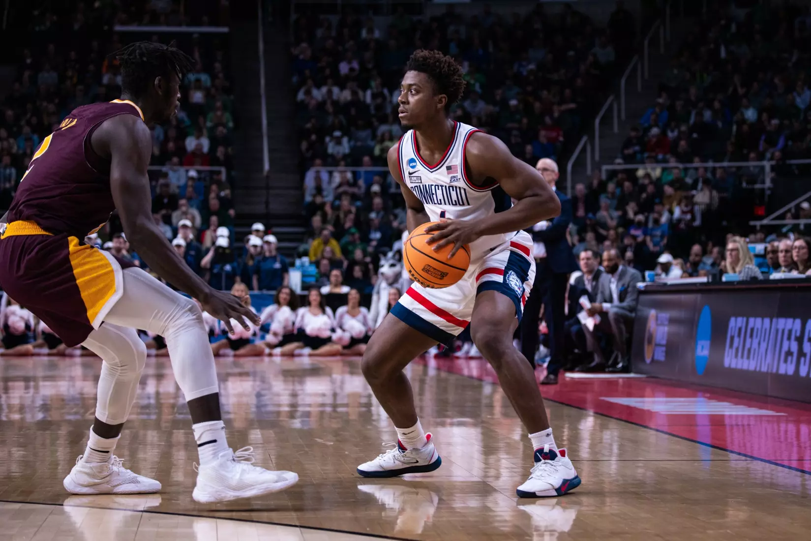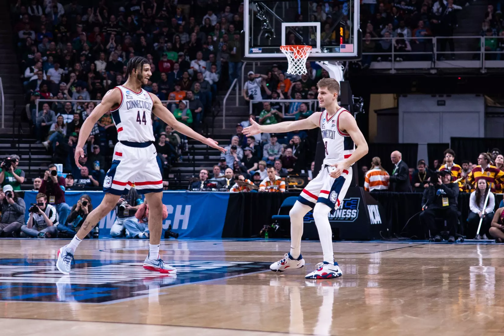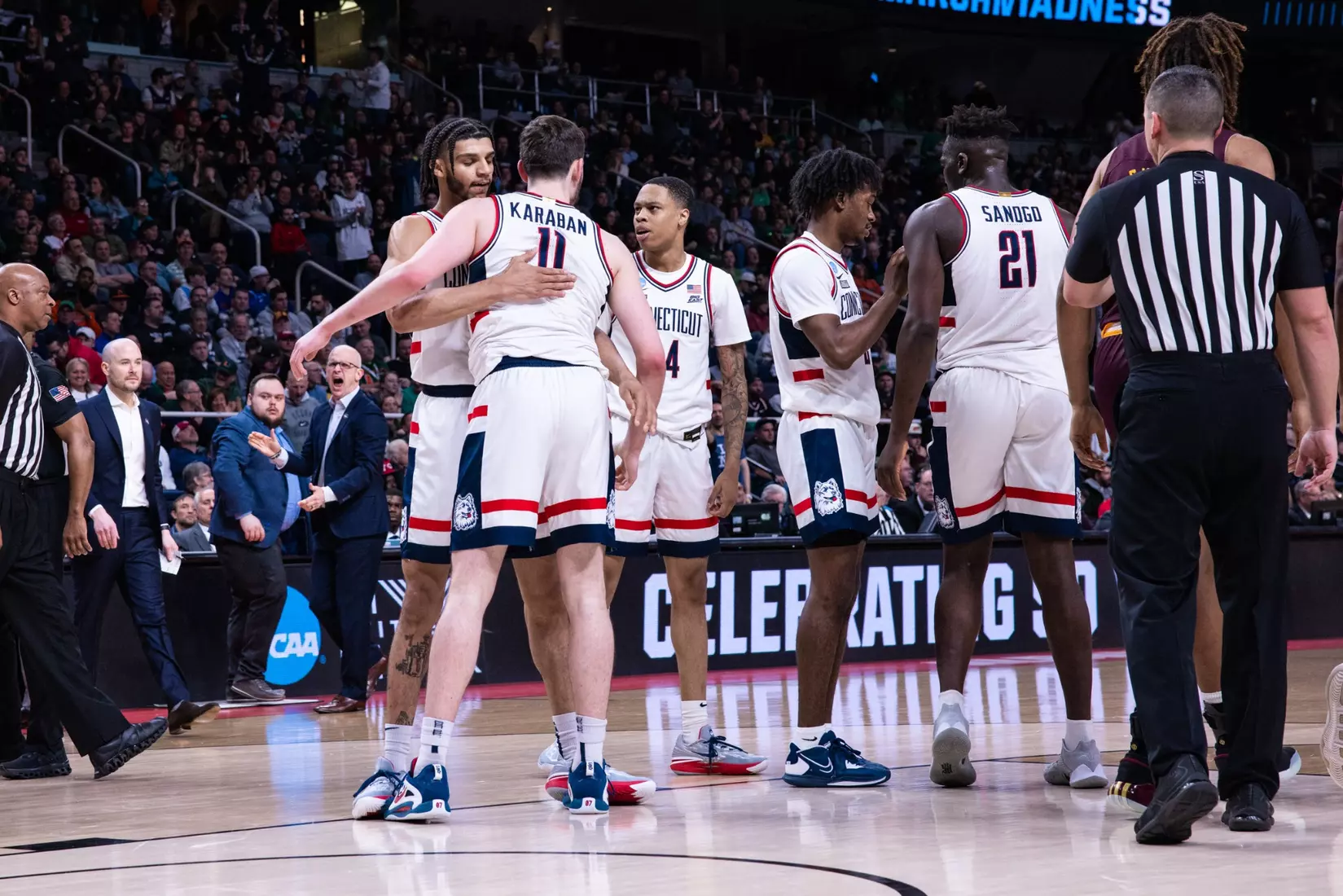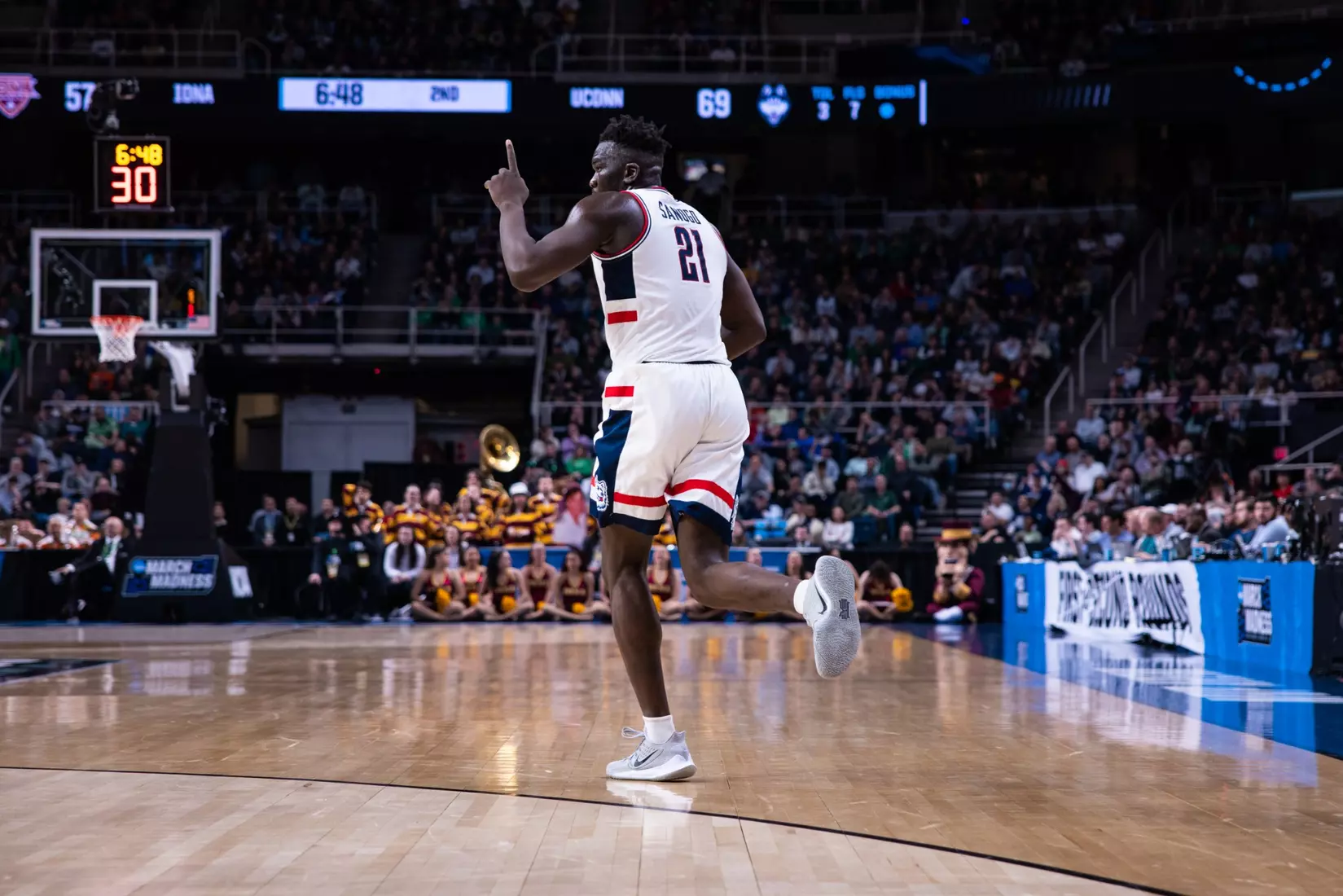 The Gaels never really threatened again. Sanogo's turnaround jumper from the baseline with 6:49 left made it 71-57 and the Huskies cruised into the second round for the first time since 2016.