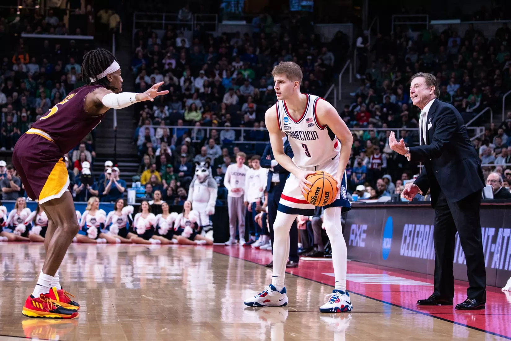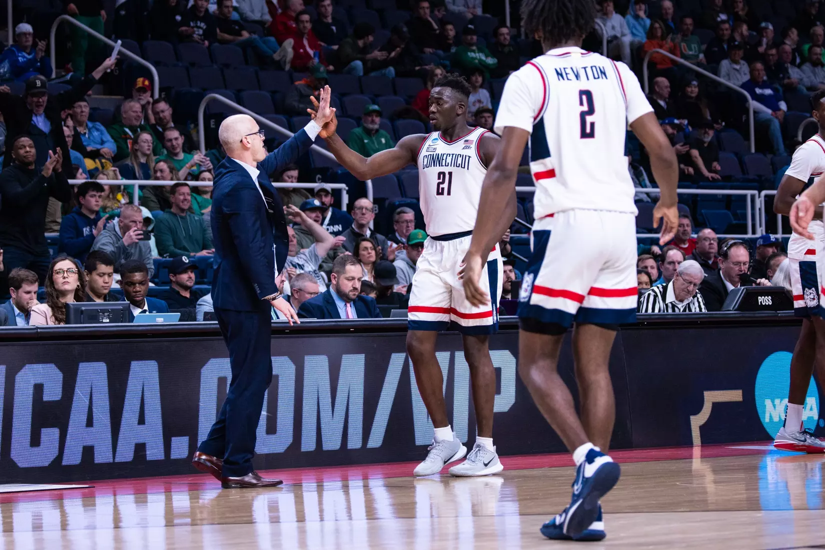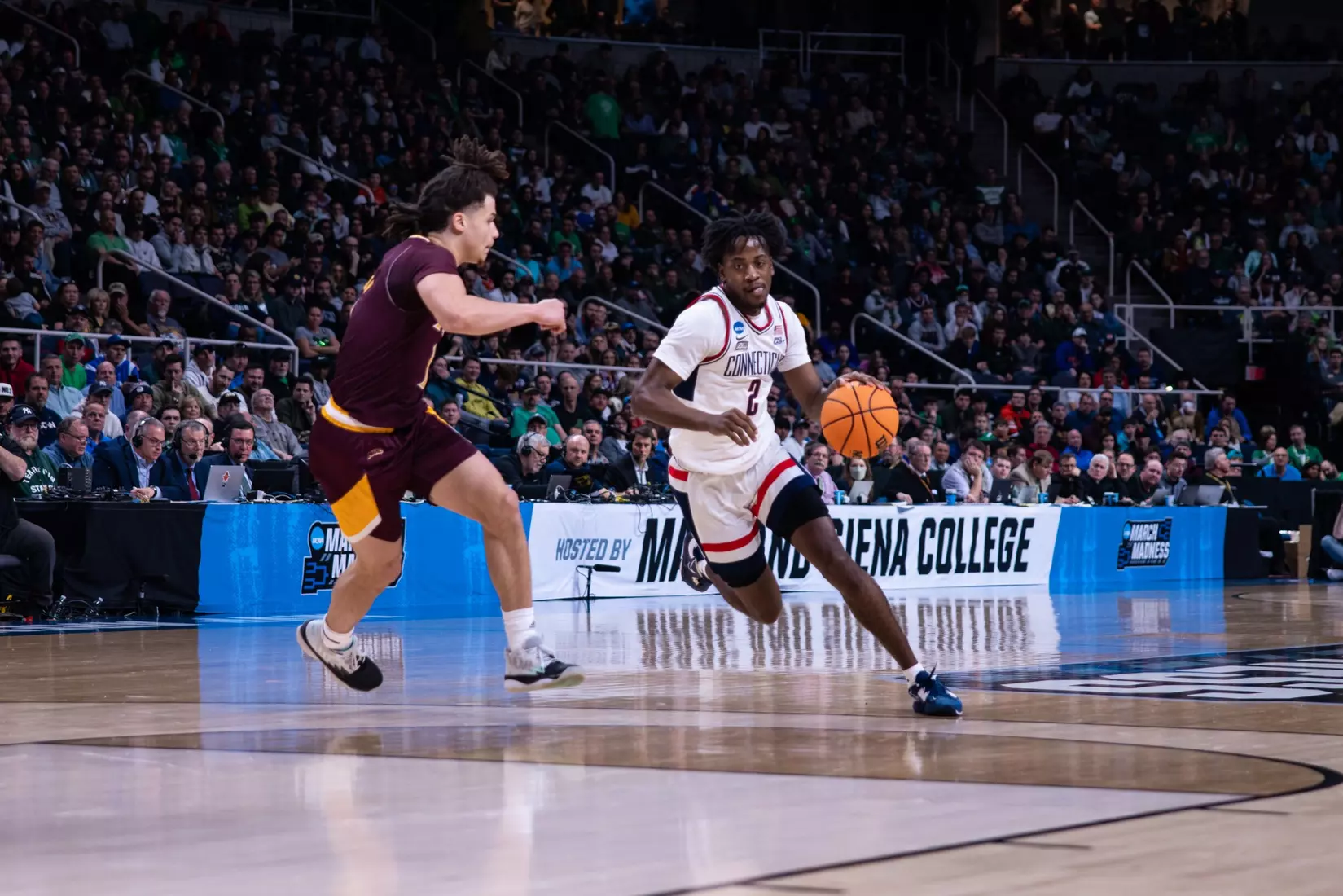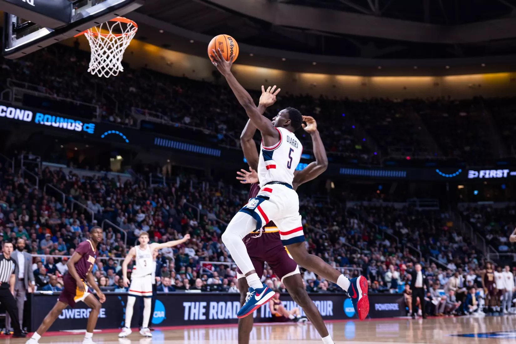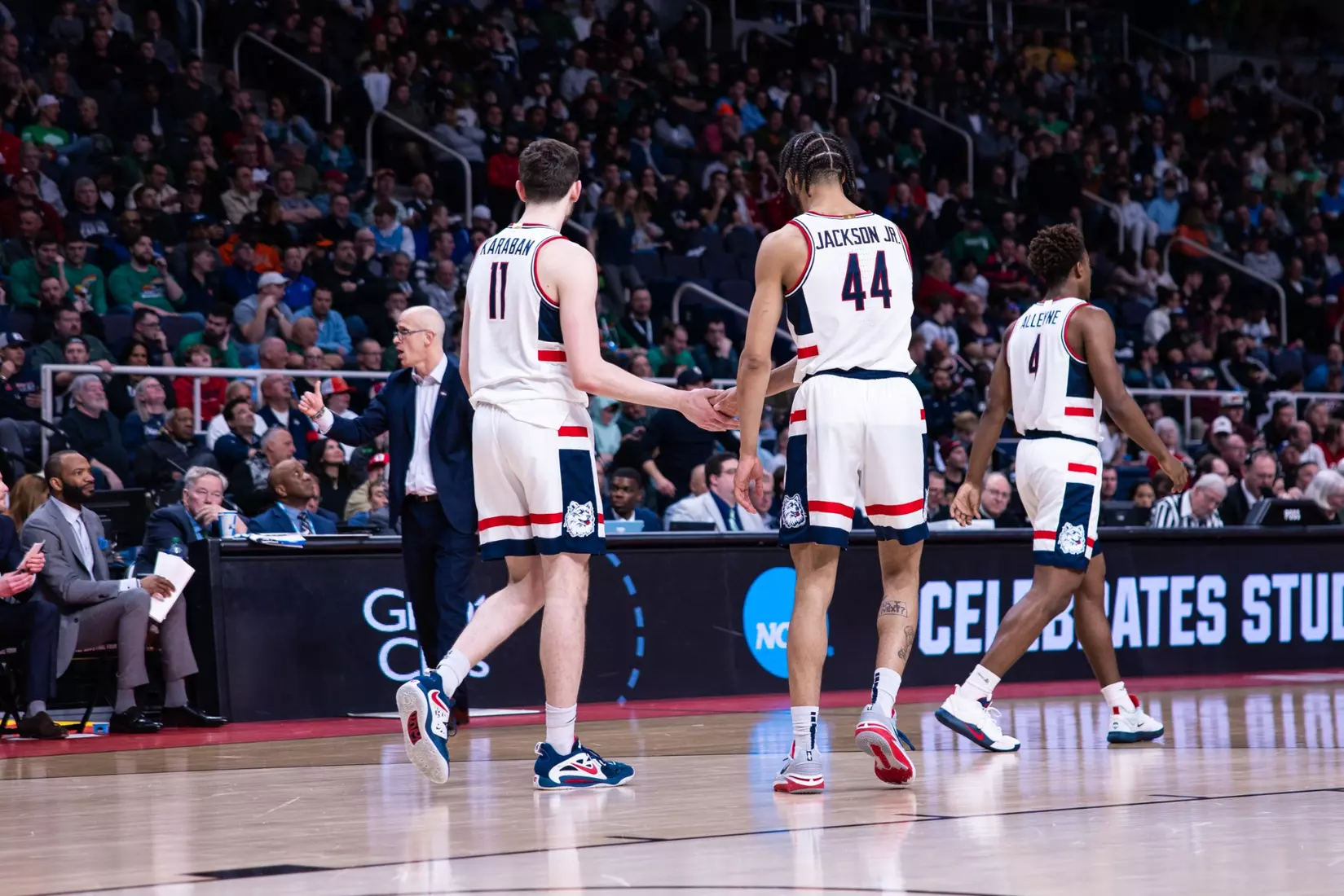 The Gaels never really threatened again. Sanogo's turnaround jumper from the baseline with 6:49 left made it 71-57 and the Huskies cruised into the second round for the first time since 2016.
